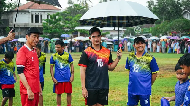 Diketahui, Jokowi bermain menggunakan kaos timnas Indonesia sebagai penjaga gawang di bawah guyuran hujan deras. Dia nampak satu tim dengan Kaesang, sementara Raja Juli Antoni menjadi lawannya.